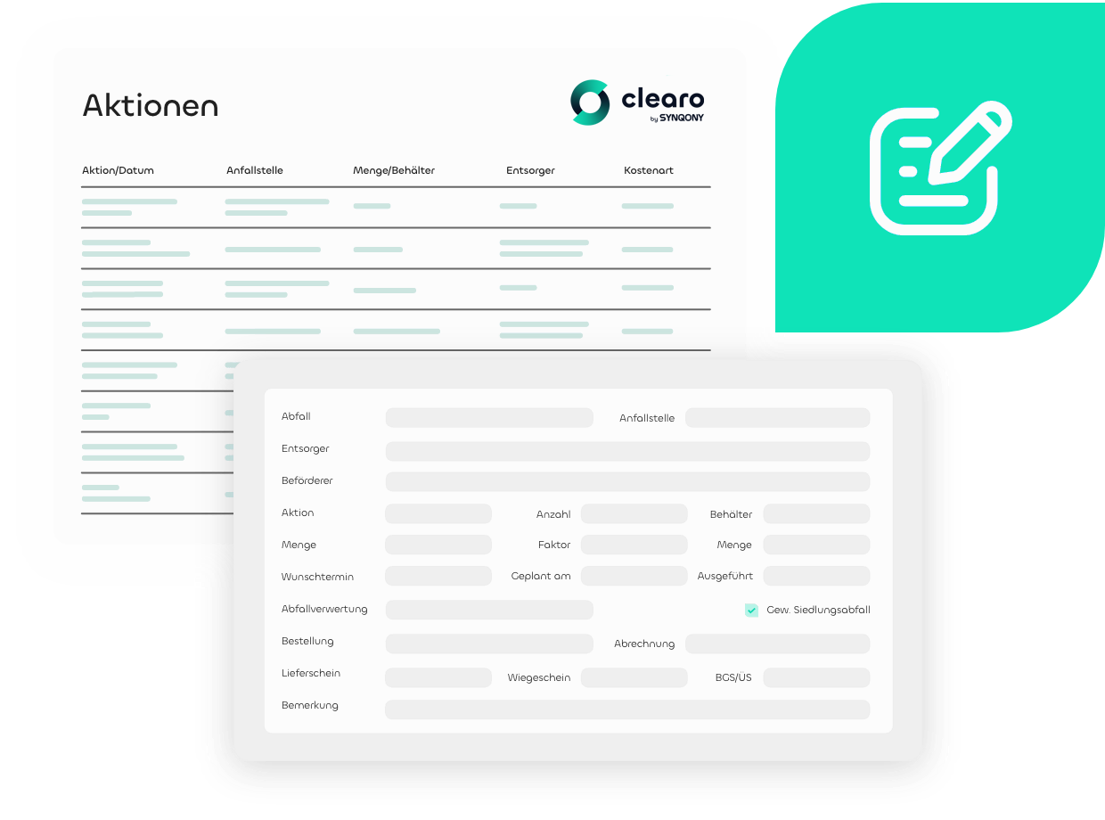 Mit clearo werden im Abfalldatenblatt (ADB) alle wichtigen Informationen übersichtlich zusammengeführt. Bei der Eingabe von Werten werden diese bereits auf Plausibilität geprüft. Einmal eingegebene Daten sowie hinterlegte Werte und Informationen zu Anfallstellen, Behälter oder Dienstleister werden automatisch im Abfallmanagement-Prozess verwertet: Keine unnötige doppelte Dateneingabe.