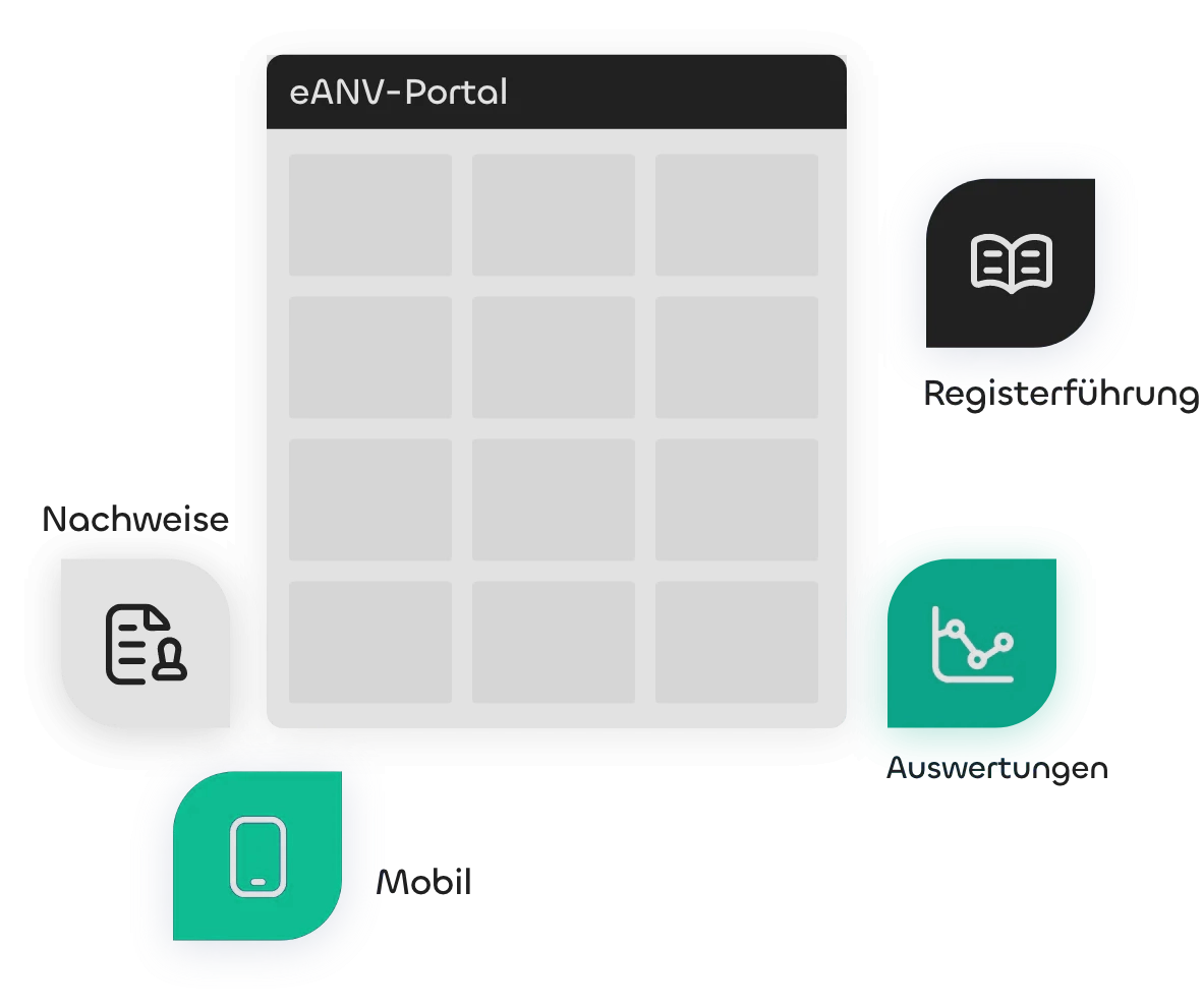 Mit dem eANV-Portal lassen sich die Nachweis- und Verbleibskontrollen, inklusive des elektronischen Entsorgungsnachweises und des elektronischen Begleitscheines sowie die elektronische Registerführung einfach und rechtssicher in den Arbeitsalltag integrieren.