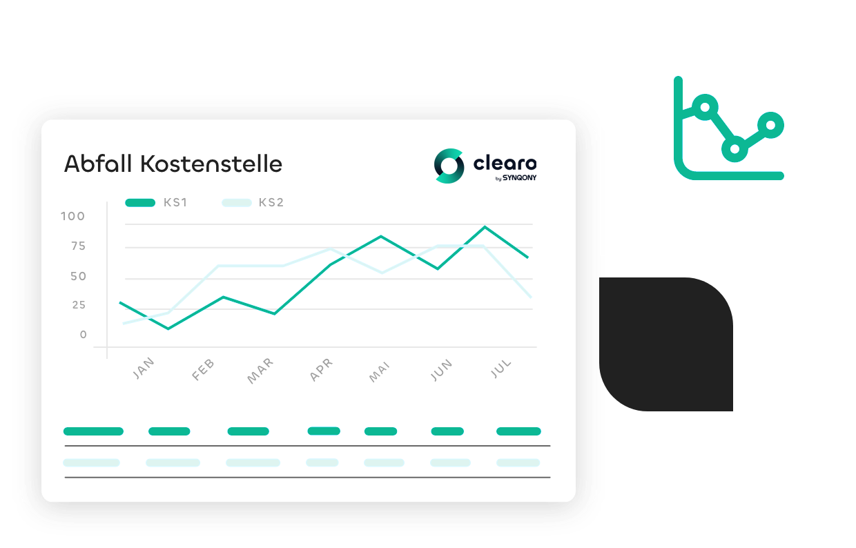 Bei jeder erfassten Aktion speichert clearo automatisch alle wichtigen Informationen, vor allem auch die Kostentreiber. Die Daten können gezielt pro Kosten- bzw. Anfallstelle, Standort, Material, Entsorger und Zeitraum selektiert werden. Mit dieser Transparenz behalten Sie den Überblick – eine detaillierte Kostenanalyse und faire Kostenverteilung war noch nie so einfach